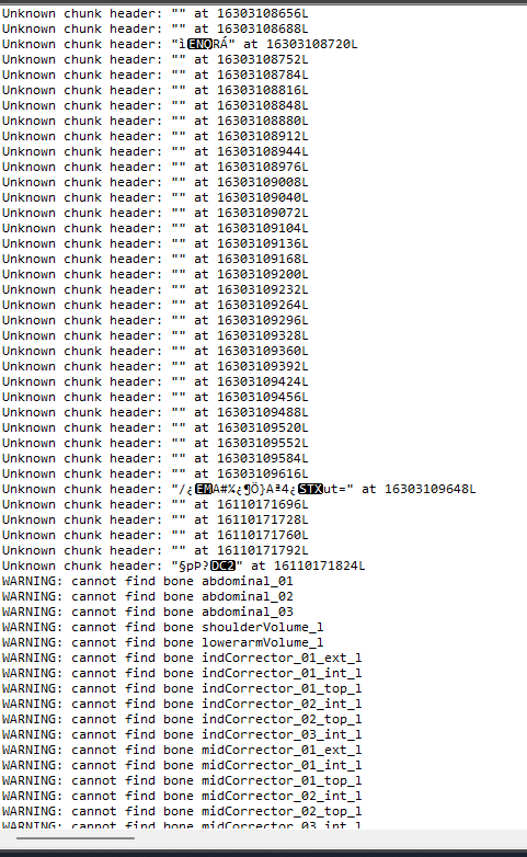 @AllEx: This issue should be fixed now as well. As for the rest - it's not possible to bypass all possible errors by design, because most of them are caused by custom changes in the engine, which you don't expect while parsing binary data and all adjustments should be done manually on per game basis (mostly). There is no other way around. Also, you can copy only crash message, there is a button for this in the crash window.